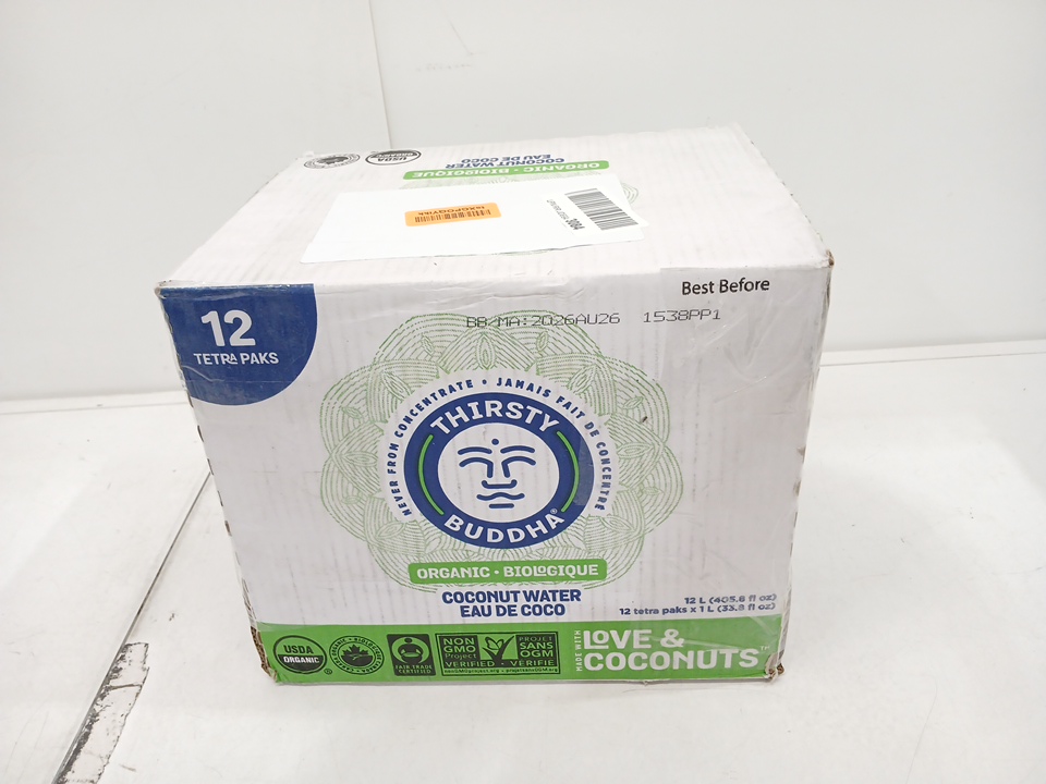 12pk THIRSTY BUDDHA CLASSIC ORGANIC COCONUT WATER - 1L EACH CARTON