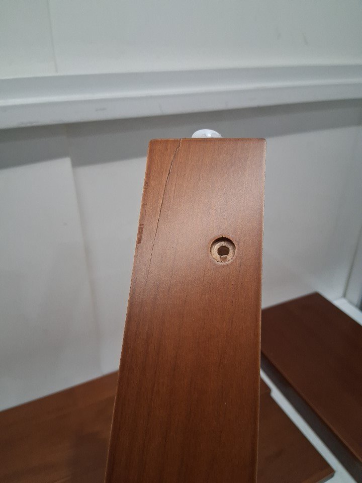 please note the product was discovered to have a crack in one of the legs, we believe this won't effect the use of the product but could be reinforce with some wood glue, please see photos for more details