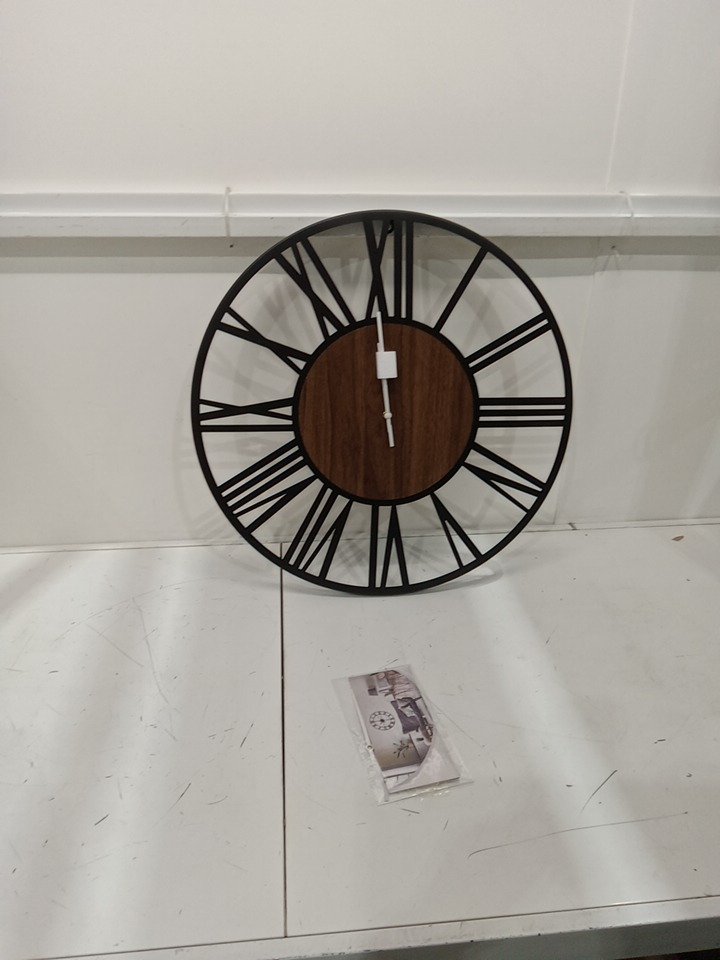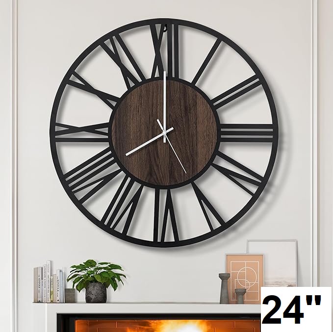 LEIKE Silent, Non Ticking, Battery Operated Rustic Round Modern Large Wall Clock - 24" - roman Numerals - dark wood