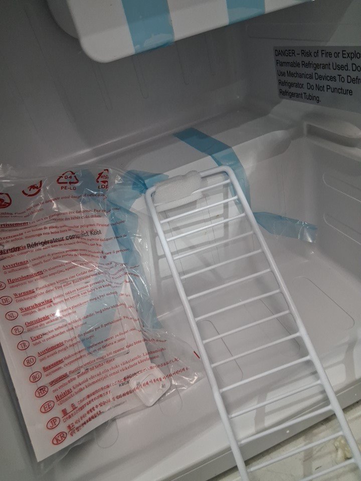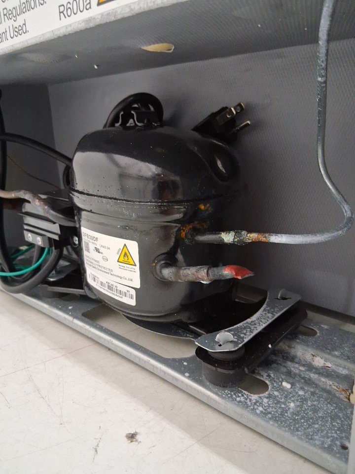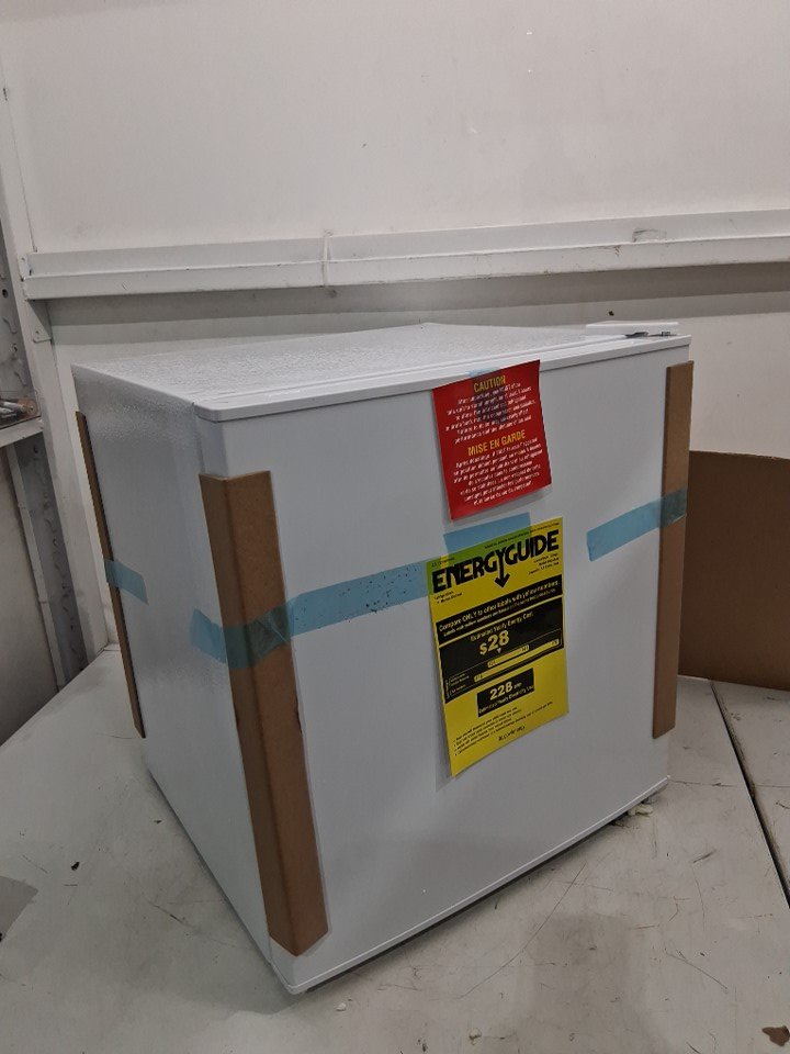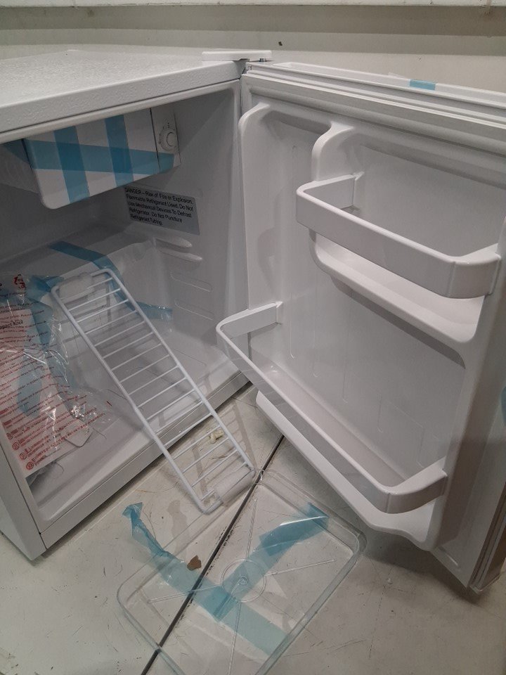 item has some minor marks and scratches and on the door because of the tape some of the pain is slightly coming off shown in pictures inside the fridge there is some minor debris tested for power