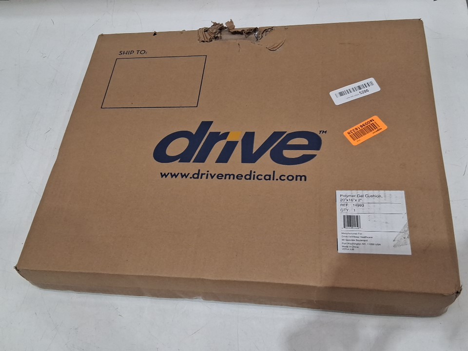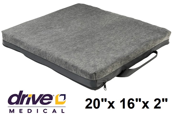 Drive medical Polymer Gel Cushion with machine washable cover - 20" x 16" x 2" - grey/black