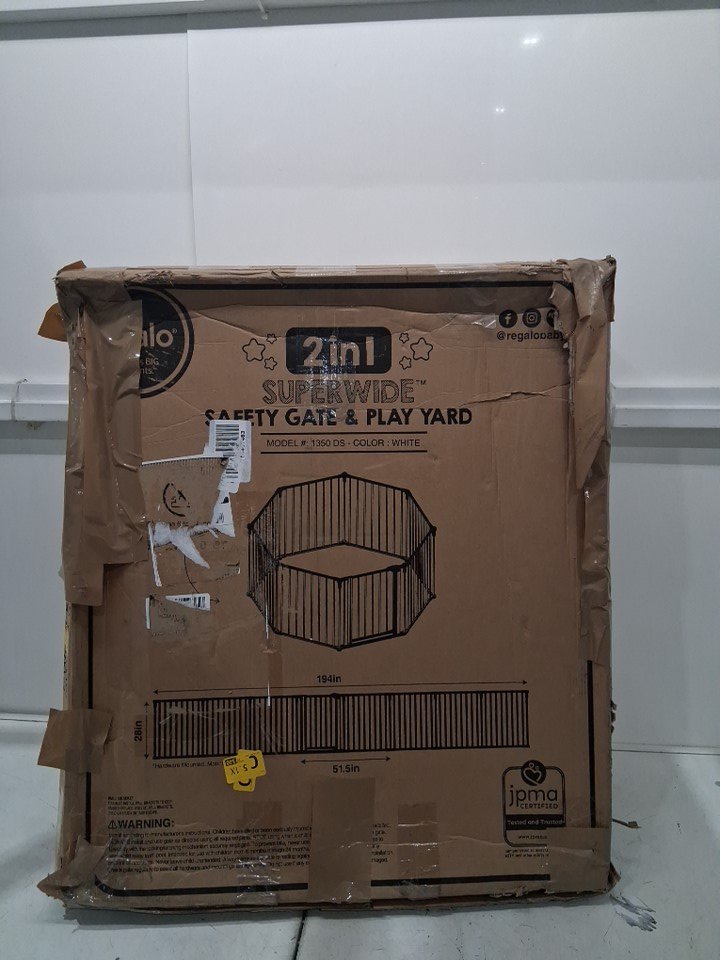 REGALO 2-IN-1 8-PANEL SUPER WIDE METAL SAFETY GATE/PLAY YARD - FITS OPENINGS UP TO 194" - 28" HIGH - WHITE (MODEL: 1350DS)