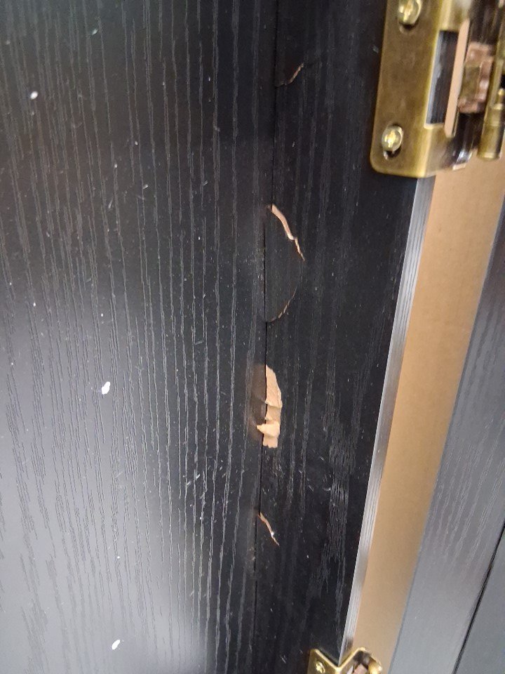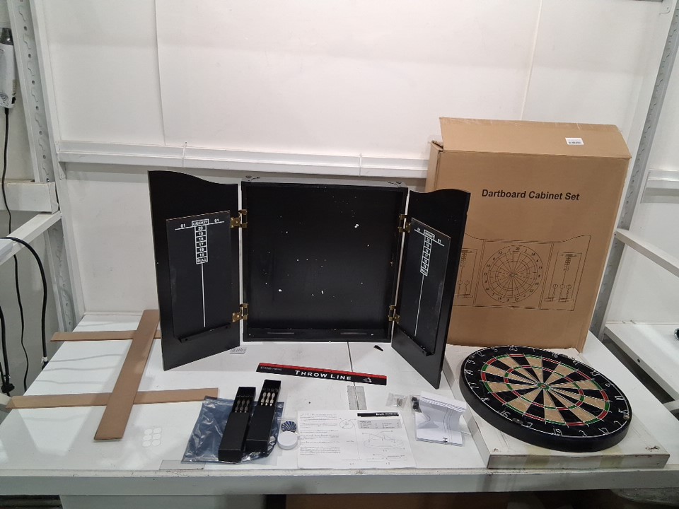 Please note that the cabinet is damaged and the set has a slight musty scent to it, but it otherwise appears unused/new (see photos)