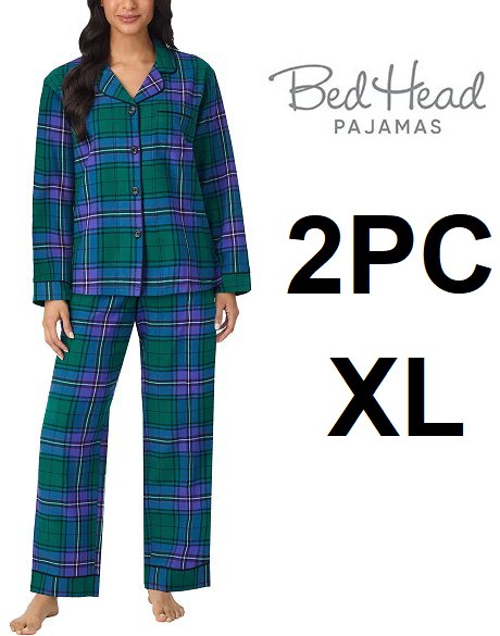 2pc women's bedhead flannel pajamas set - extra large - multi-colour (style: 4323333)