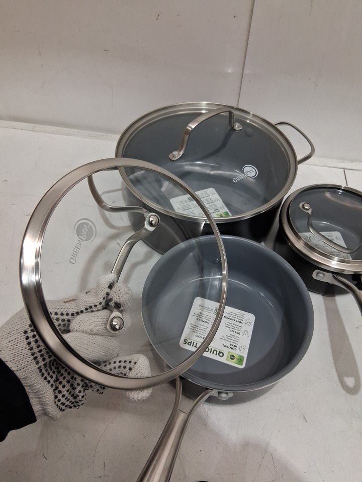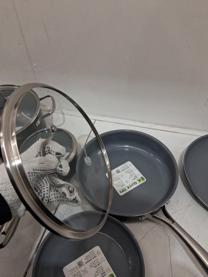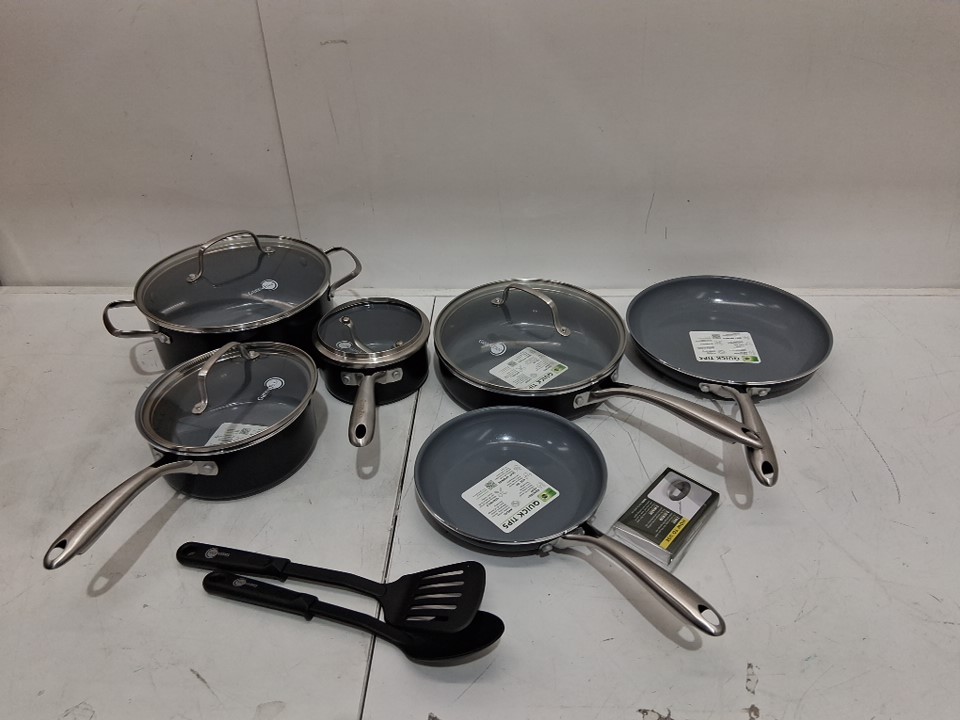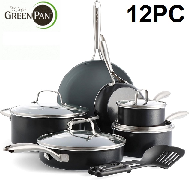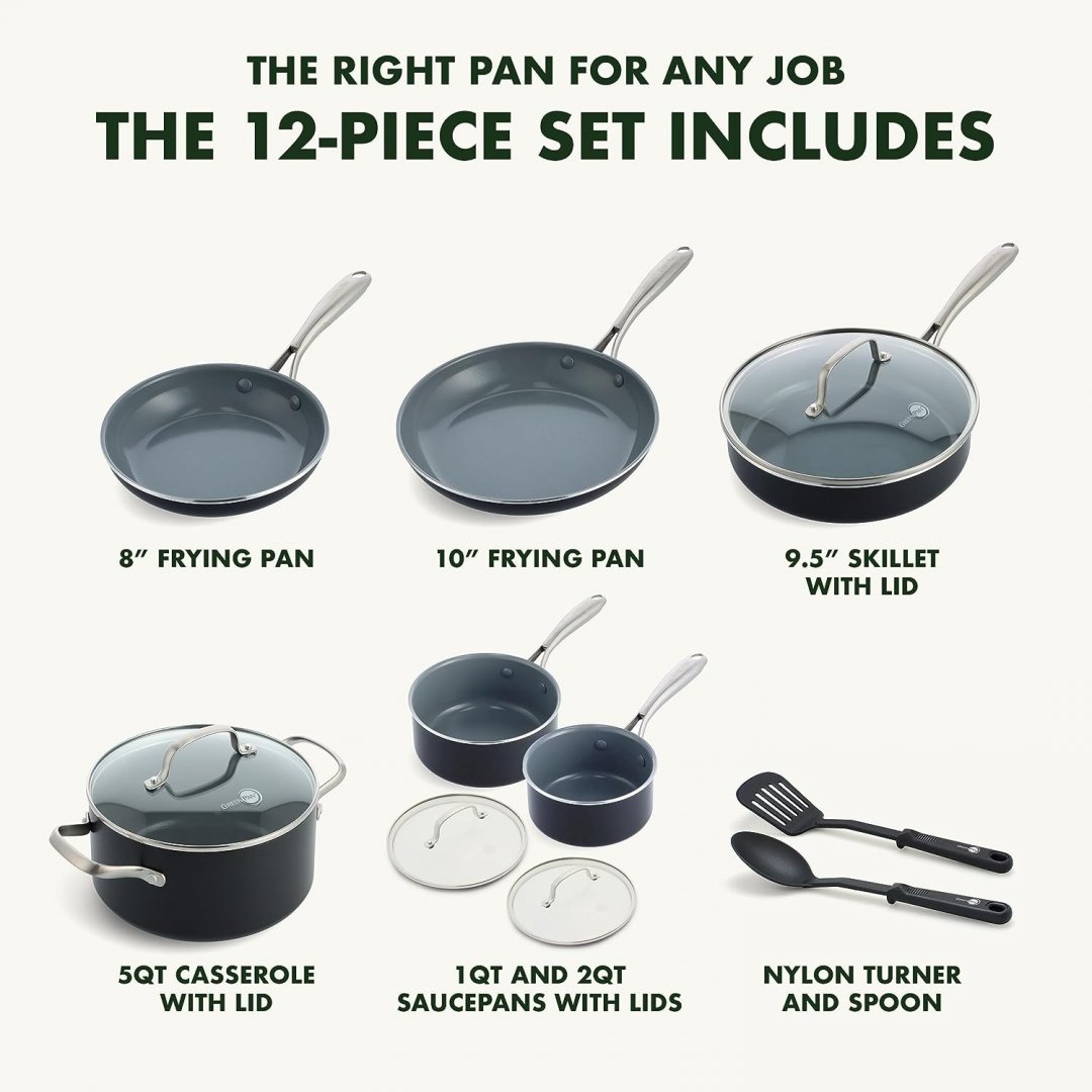 12PC GreenPan Swift Healthy Ceramic Nonstick Cookware Pots and Pans Set, Stainless Steel Handles, PFAS-Free, Dishwasher Safe, Oven Safe -Black