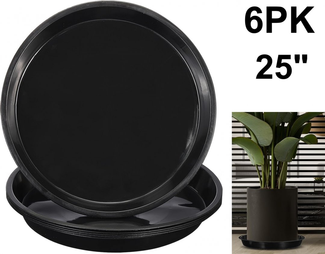 6PK PATIKIL Plastic Plant Saucer - 25" - BLACK