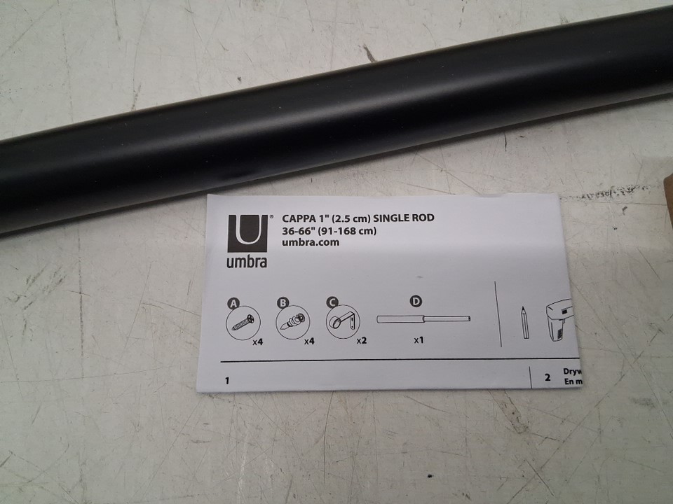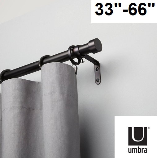UMBRA CAPPA EXPANDABLE SINGLE CURTAIN ROD 36"-66" BLACK