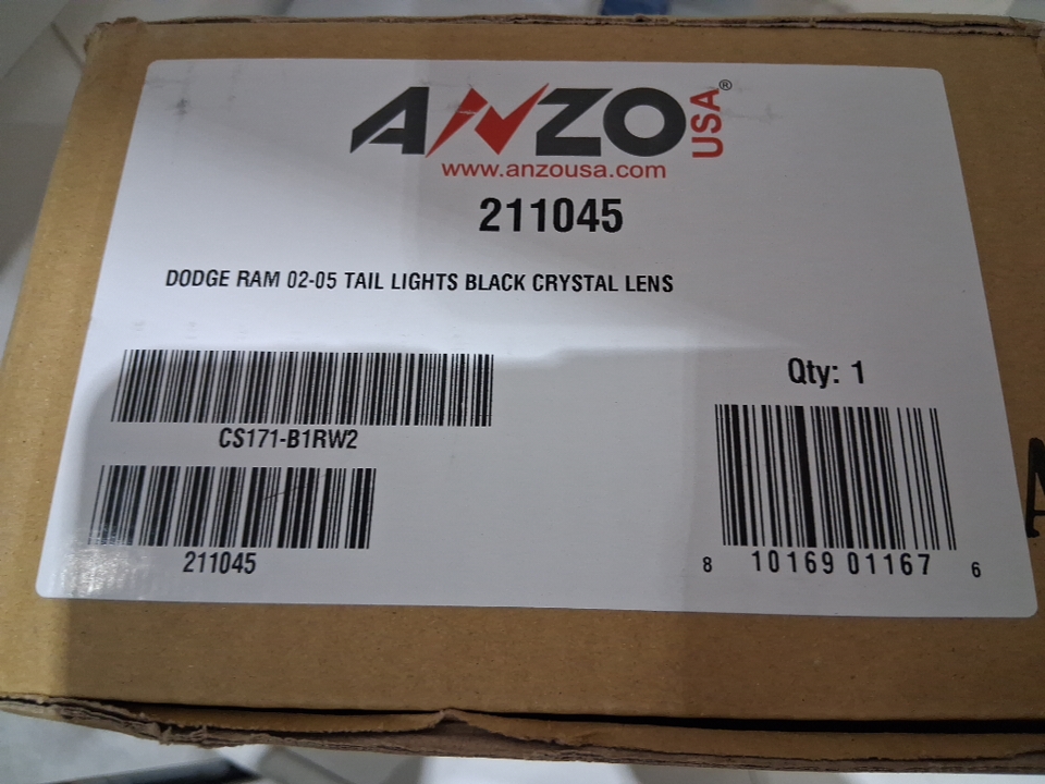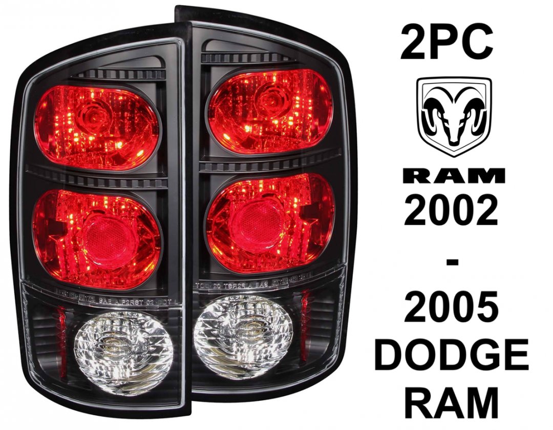 2PC Anzo USA Rear Black Crystal Lens Tail Lights For 2002-2005 Dodge Ram (Model: 211045 / CS171-B1RW2)