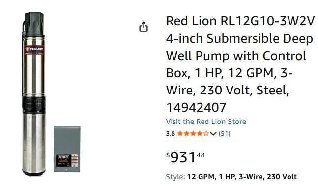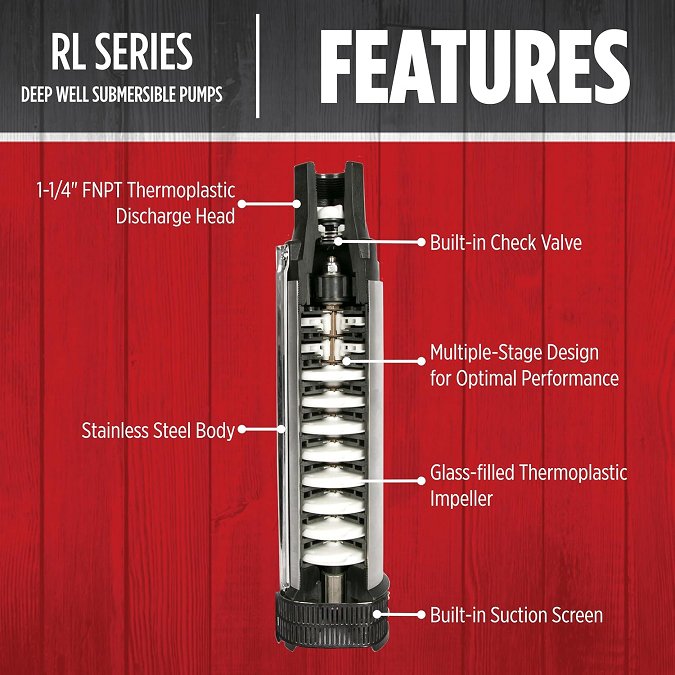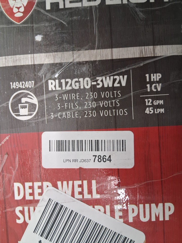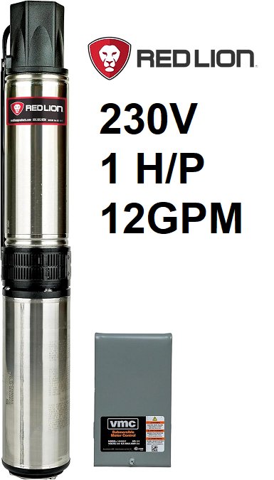 Red Lion Submersible Deep Well Pump with Control Box - 1 HP - 12 GPM - 230V - 4" DIA (MODEL: RL12G10-3W2V)
