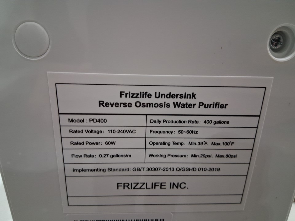 FRIZZLIFE TANKLESS REVERSE OSMOSIS DRINKING WATER FILTRATION SYSTEM - 400GPD - WHITE (MODEL: PD400)