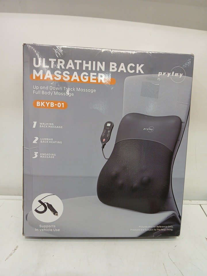 Pryfey Heated Ultrathin Back Massager With 4D Kneading - 17" x 21" - Black/Grey (Model: BKYB-01)