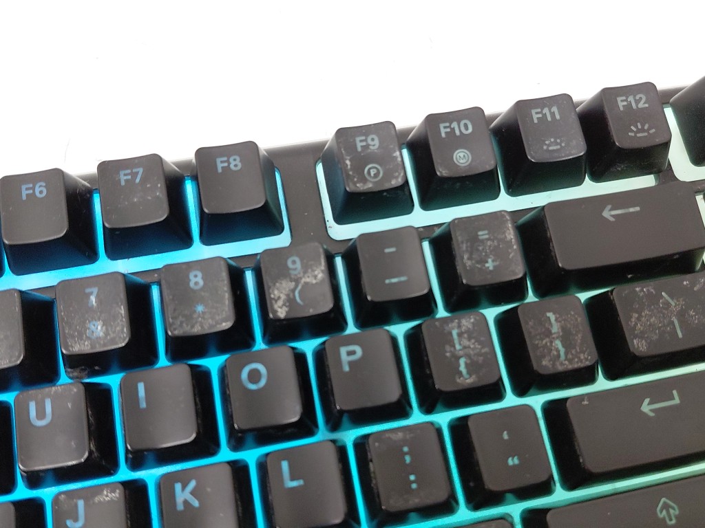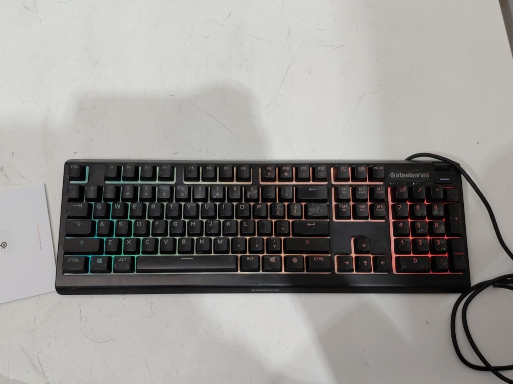 Missing wrist rest. Item's key have signs on use, can be cleaned (see photos) tested for power & function