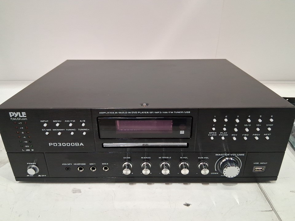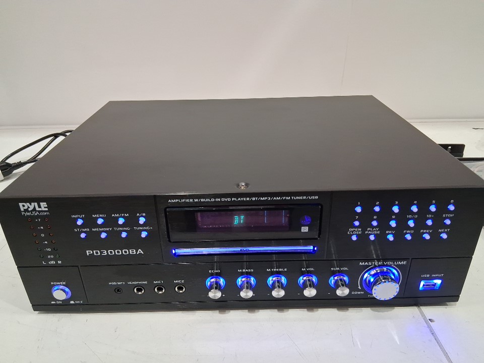 Pyle 4 CHANNEL Wireless Bluetooth stereo Amplifier with remote, rack mount, front cd/dvd player, fm radio, hi def input, HDMI, aux, RCA, USB & 2-mic input with echo - 3000w - black (model: PD3000BA)
