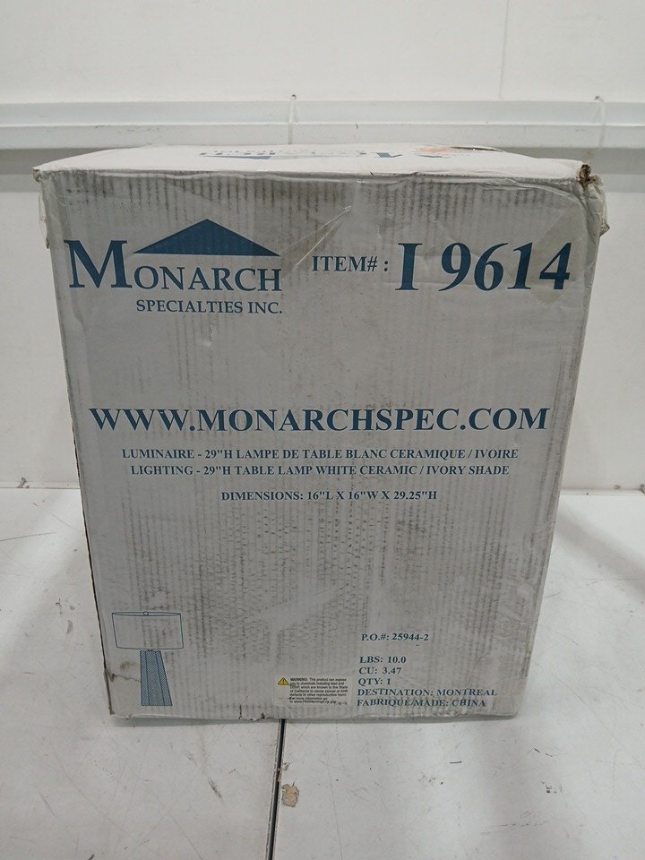 Monarch Specialties Lighting Table Lamp - 29" -White Ceramic, Ivory/Cream Shade - (Model- I 9614)