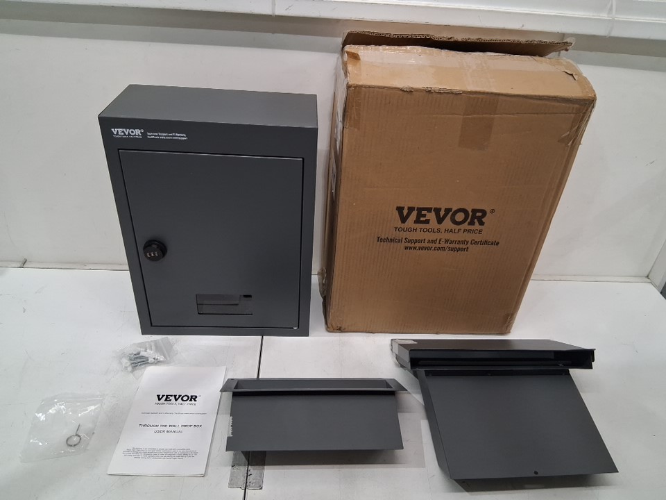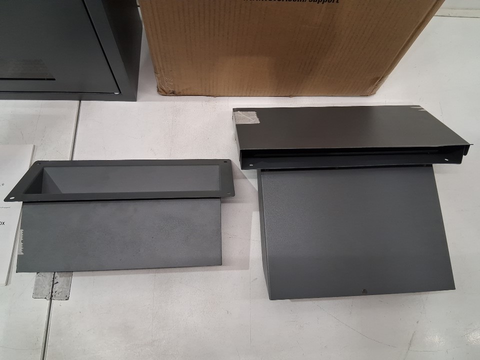 Please note that there is a slight bend/scratch on the lid of the chute, but the drop box otherwise appears new (see photos)