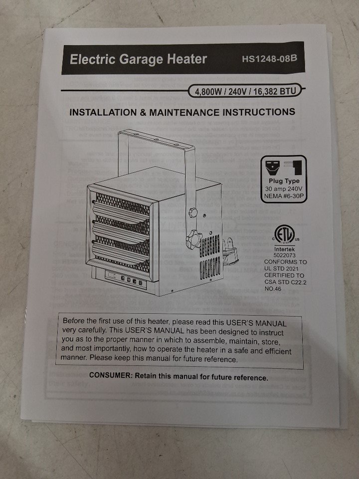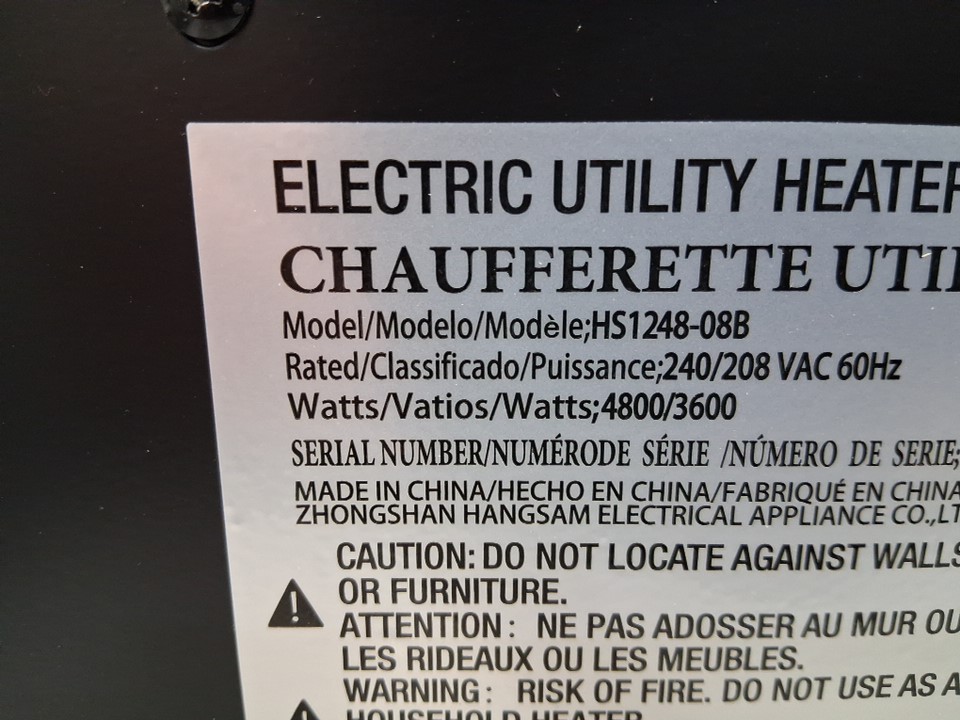 ctsc electric garage heater - 7500w | 240v | timer - black - (MODEL: hs1248-08b)