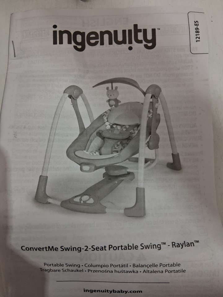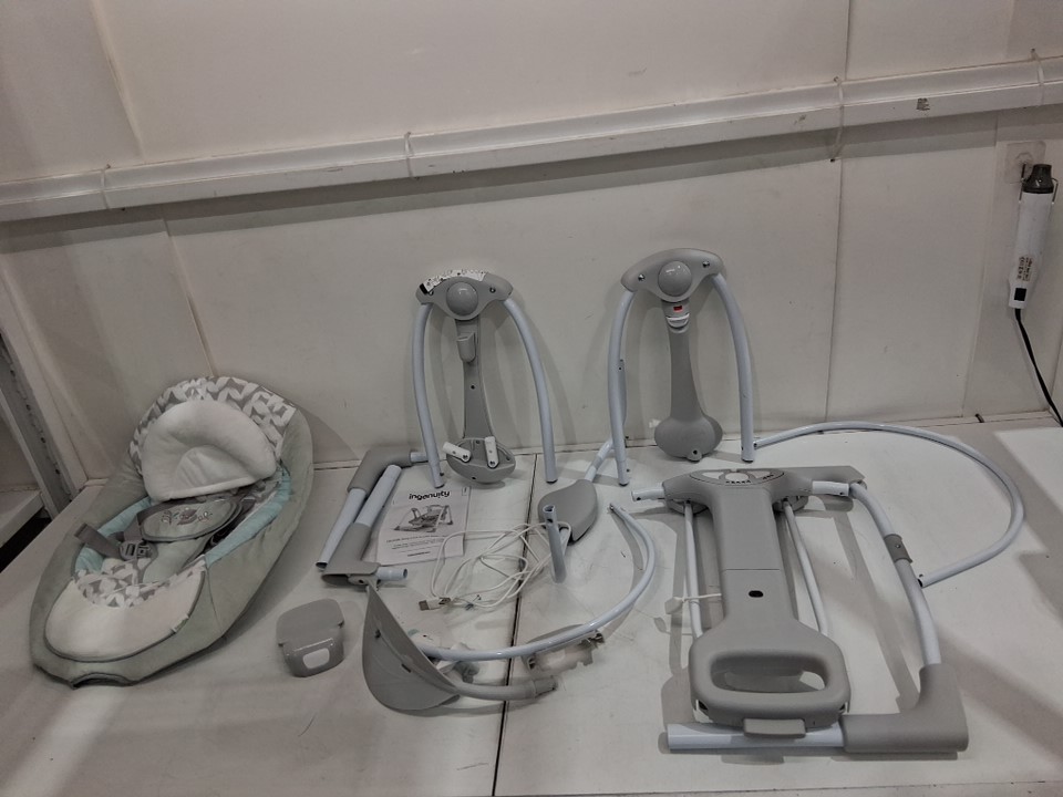 Ingenuity 2-in-1 convertme compact portable baby swing & seat with vibrations & nature sounds - battery powered - 20lbs max- raylan theme/grey (model: ‎12189)