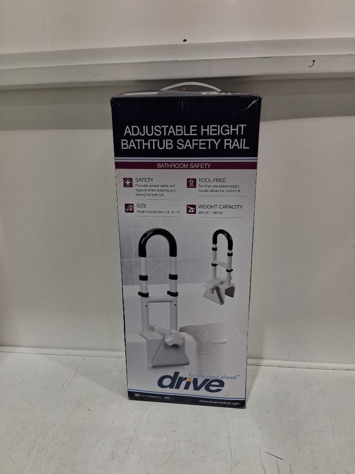 DRIVE MEDICAL ADJUSTABLE HEIGHT & WIDTH BATHTUB SAFETY RAIL - 14.5" - 17" x 3" - 7" - WHITE (MODEL: RTL12036-ADJ)