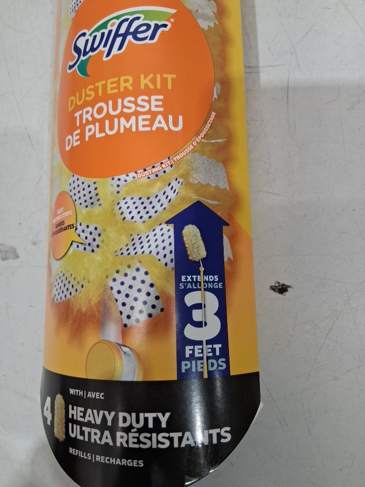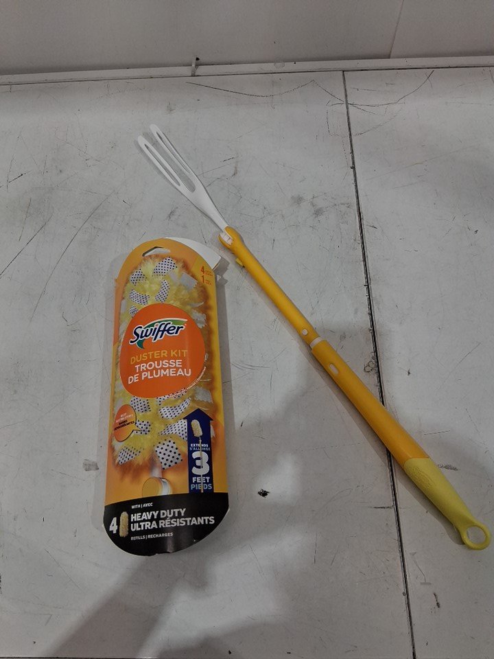 SWIFFER DUSTERS HEAVY DUTY 3FT EXTENDABLE HANDLE STARTER KIT FOR MULTI SURFACE CLEANING with 4PK of DUSTERS - yellow