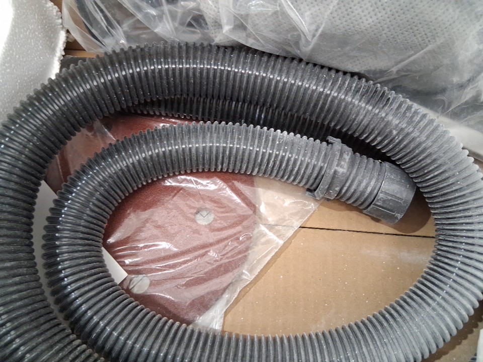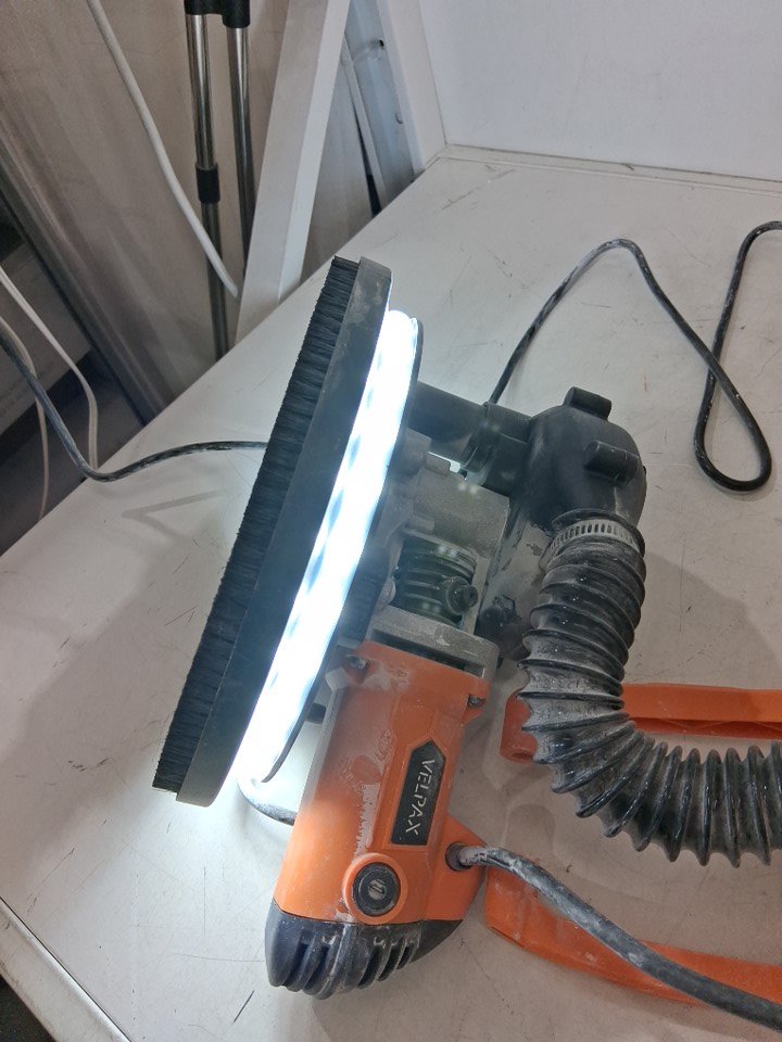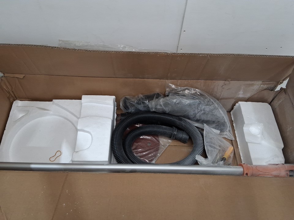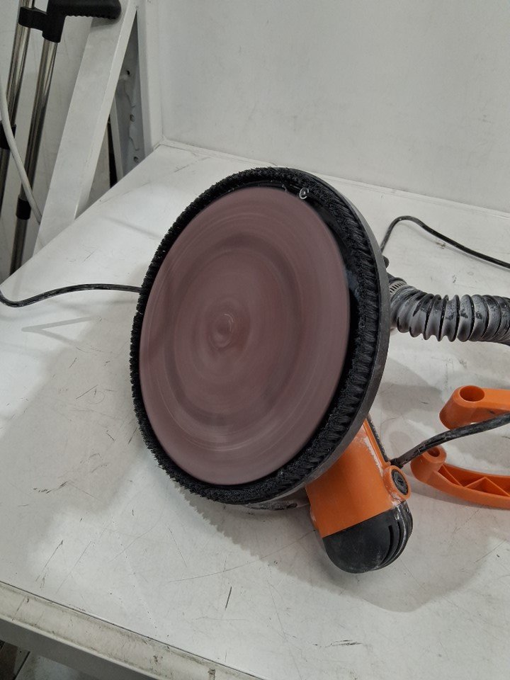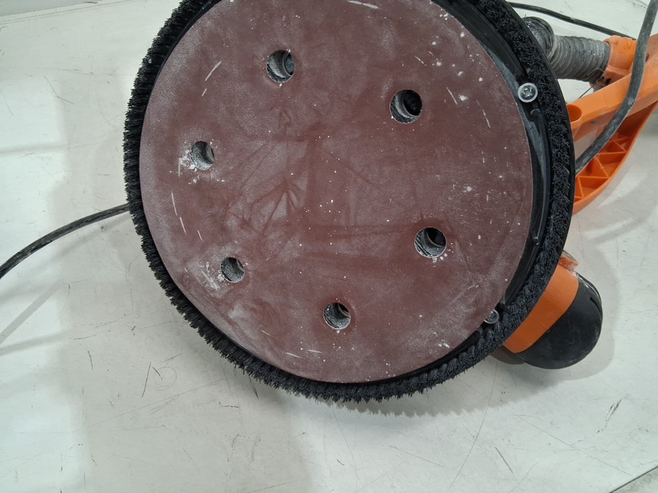 There is a large amount of drywall dust on the sander and disc indicating previous use, but outside of the cleanliness there are no apparent issues or damage to any part, and all accessories appear present, including the extra discs which appear unused - see photos. Tested for basic power and function.