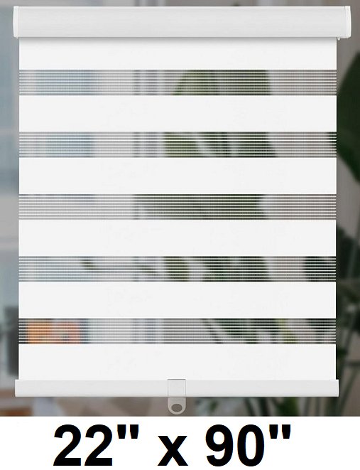 SEEYE Cordless Dual Layer Zebra Blind With Valance Cover - 22" x 90" - white