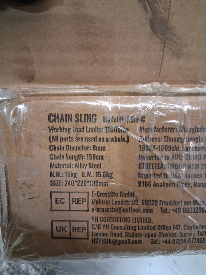 Chain Sling g80 lifting chain with grab hooks and adjustable length - 5/16'' x 5' - 11000lb capacity - orange/silver (model: 8x1.5m-c)