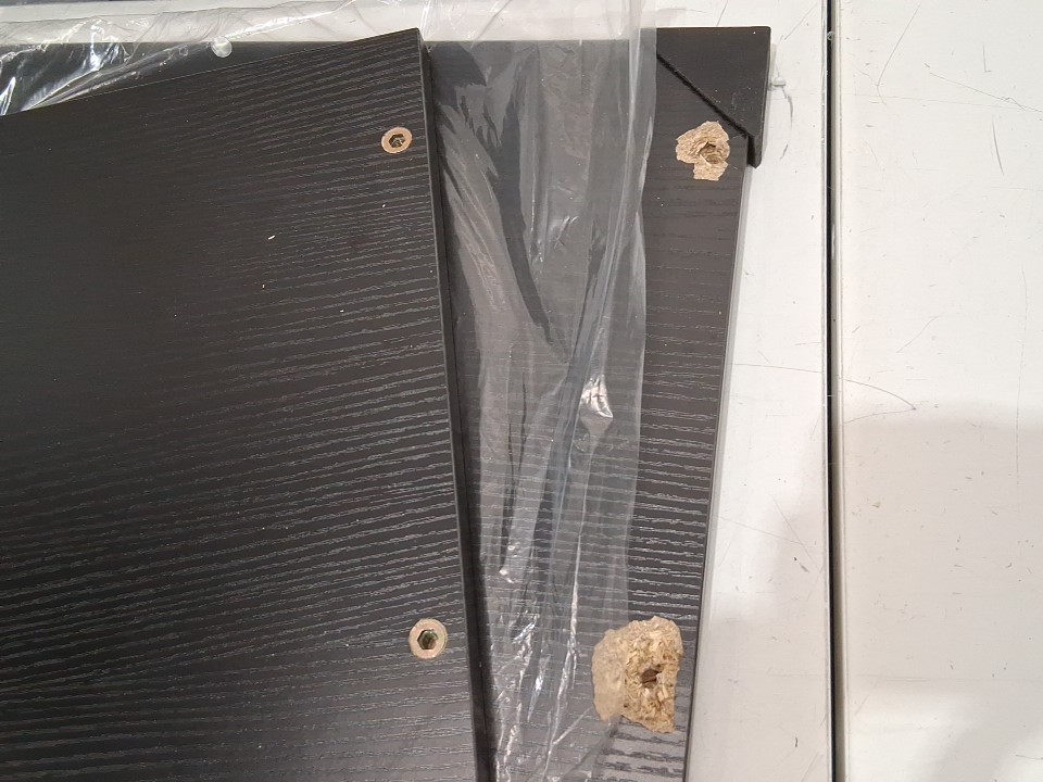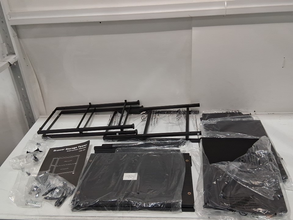 Item only includes 3 of the intended 4 fabric drawers, there is some damage to one of the top pieces which may impact the security of its attachment to the frame, see photos.