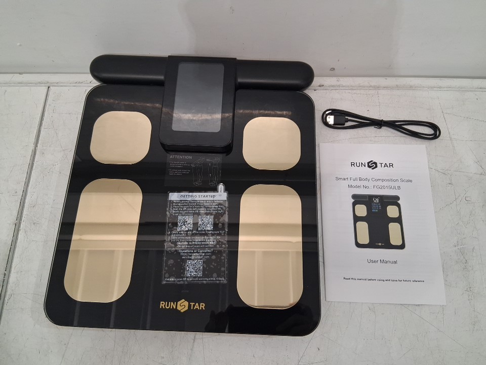 RunStar Scale for Body Weight and Fat Percentage, 8 Electrodes High Precision for BMI 28 Body Composition Measurement - app compatible - black/gold (model: fg2015ulb)