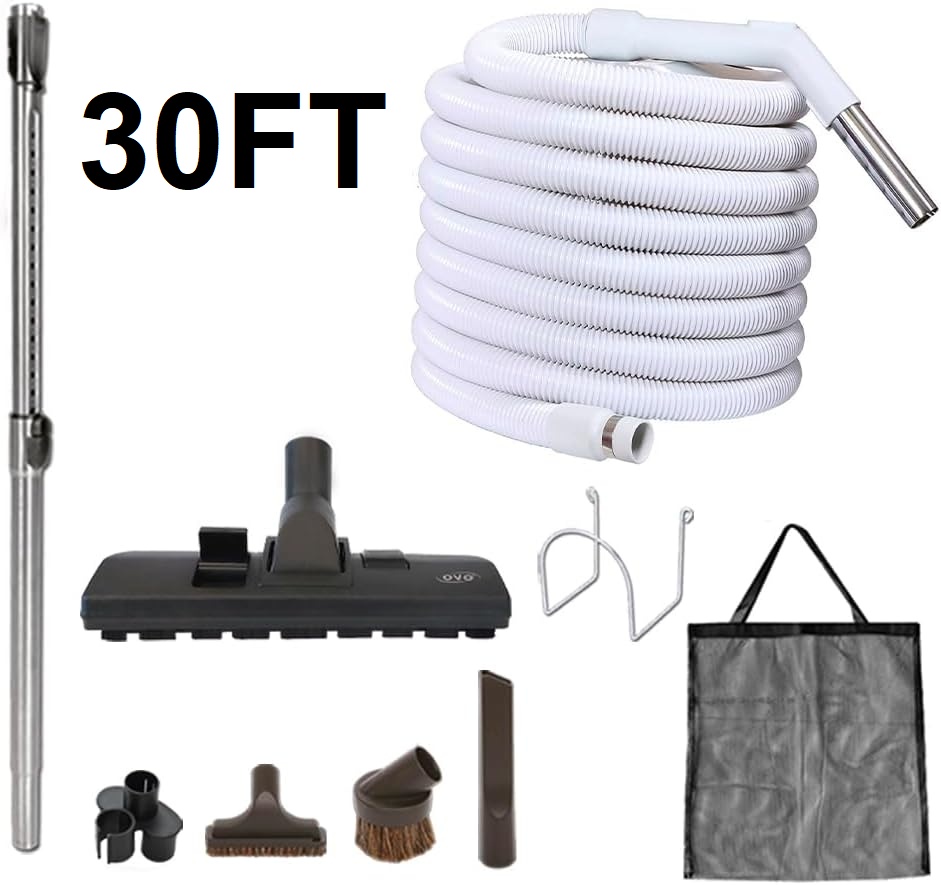 OVO Universal Central Vacuum Accessory Kit, Fits Most Inlets-Hose - 30ft - Grey (MODEL: kit-lv.30s))