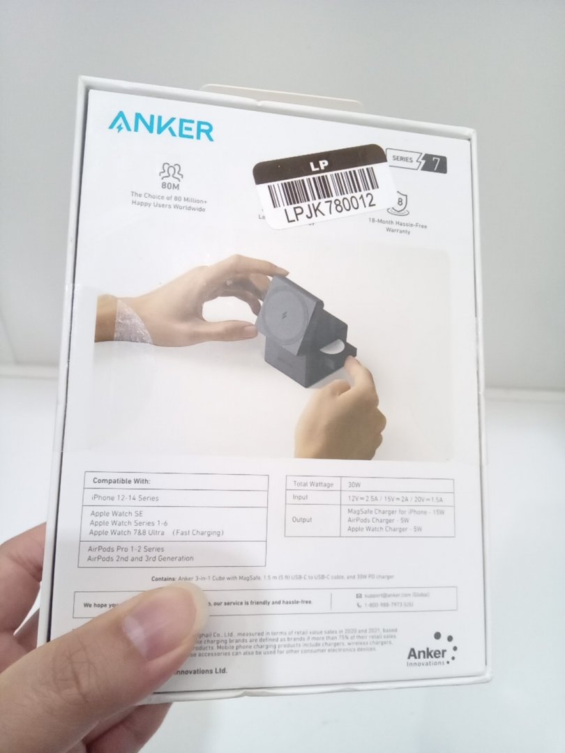 Anker 3-in-1 Mag Safe Charger Cube with MagSafe for iPhone, Apple Watch, and Apple AirPods with 30W Adapter - 5W for Accessories, 15W for iPhone - Grey (Model: Y1811ja1-1)
