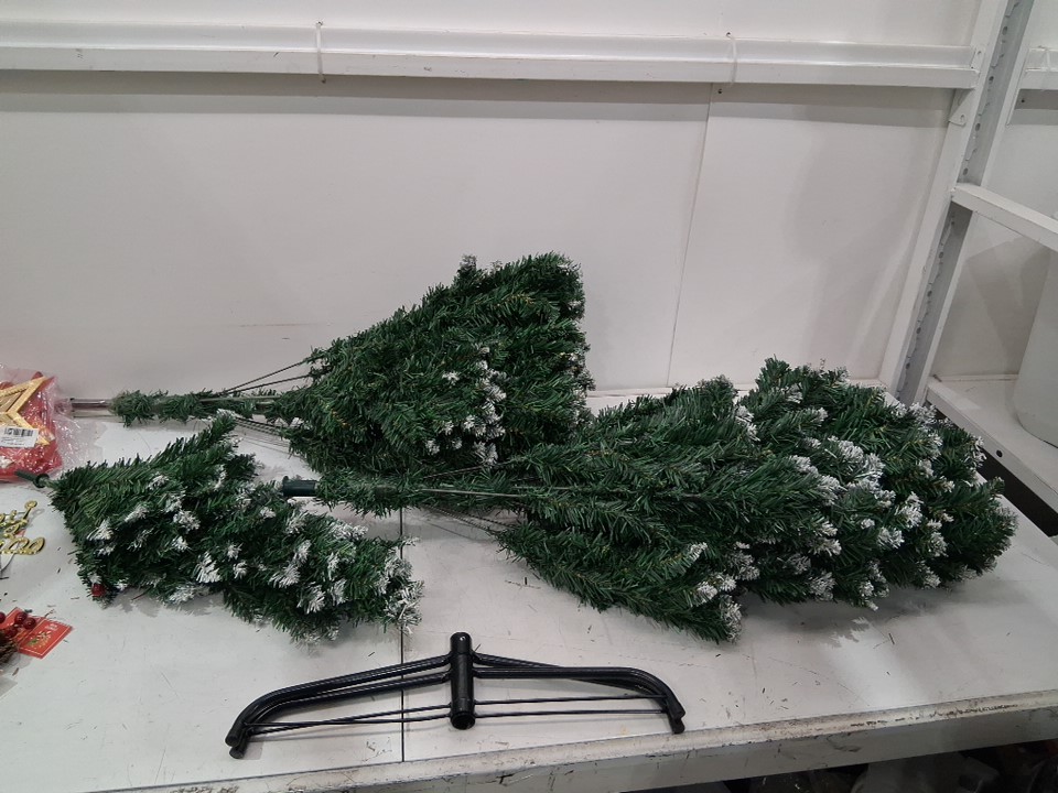 Flocked Artificial Christmas Tree with accessories - 5ft - green/white