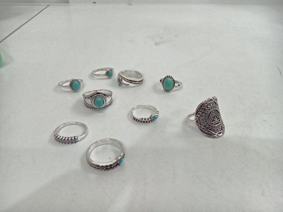 9PC PROJECT YOURSELF VINTAGE TURQUOISE RING SET - ASSORTED SIZES 6-9