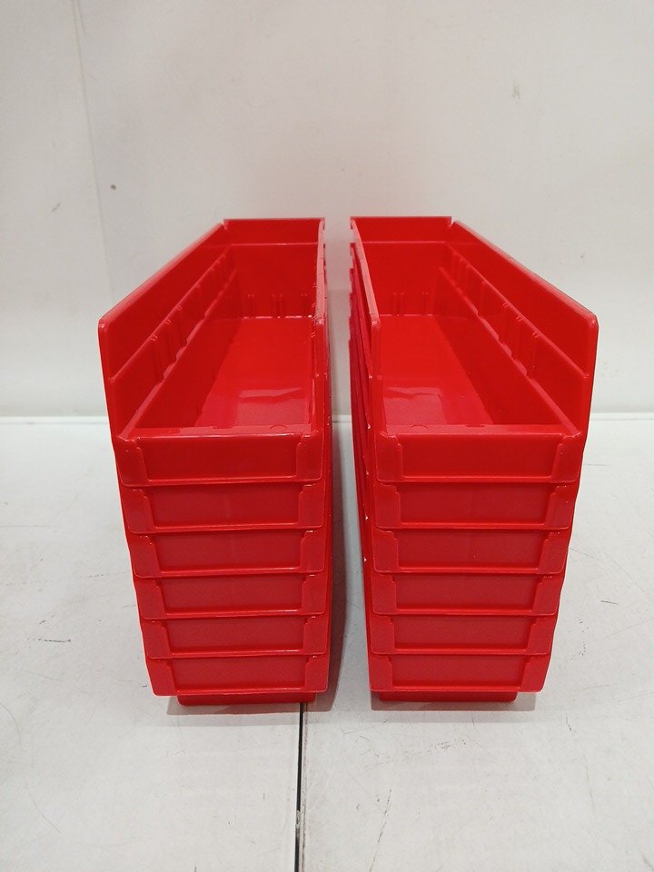 12pk akro-mils plastic nesting shelf bin box - 18" x 4" x 4" - red (model: 30128red)