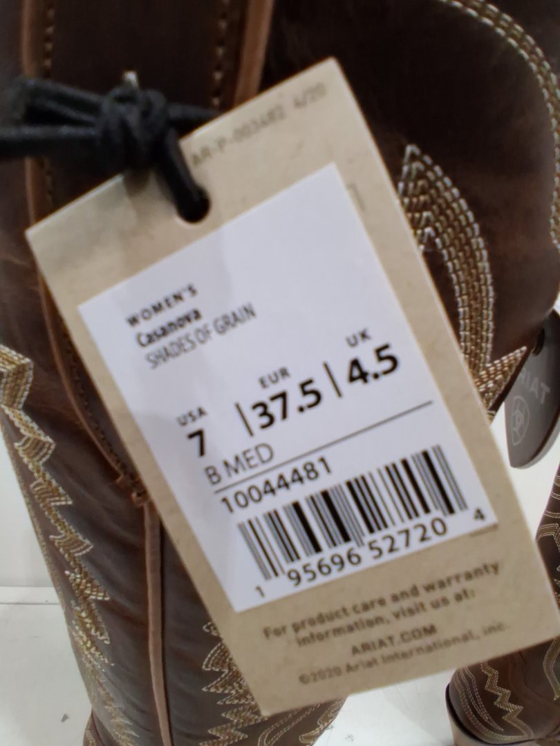 women's ariat Casanova Western cowboy Boot with side partial zip - size 7b - shades of grain/tan brown - (style: 10044481)