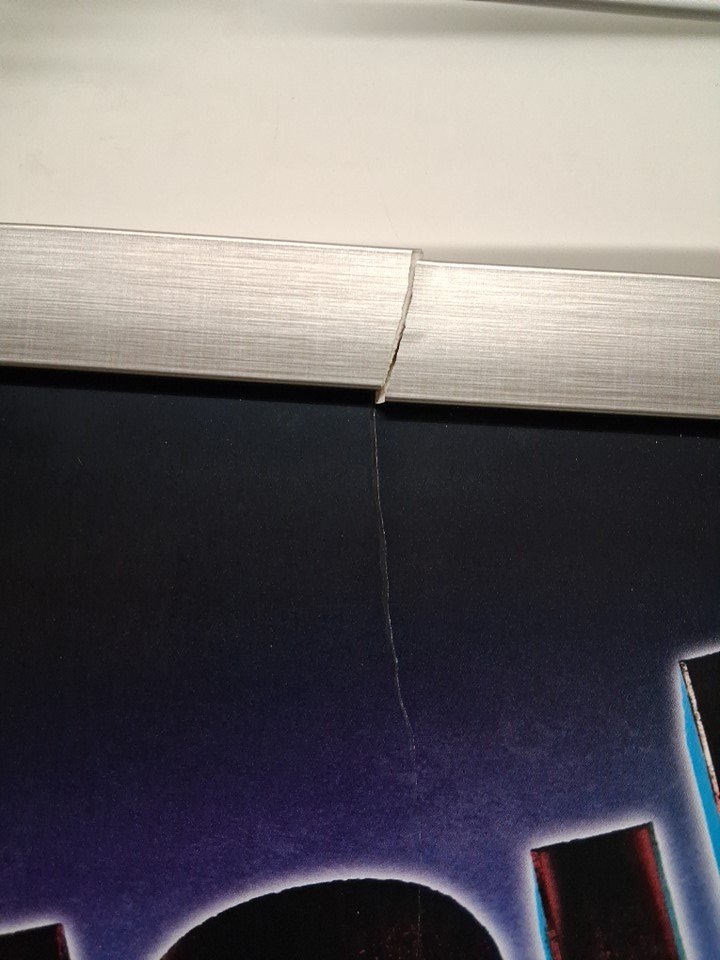 The frame is broken at the top- part of the image is cracked from the same spot (see photos)