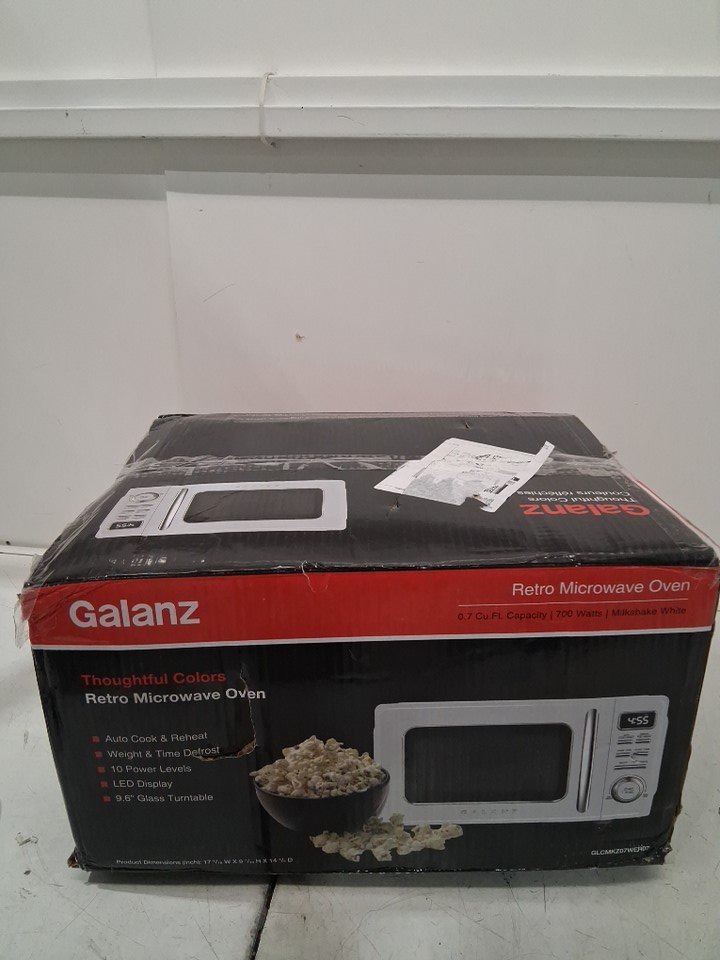 GALANZ RETRO STYLE COUNTERTOP MICROWAVE OVEN - 0.7CU.FT. - WHITE (MODEL: GLCMKZ07WER07)