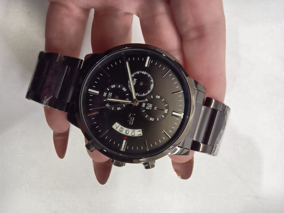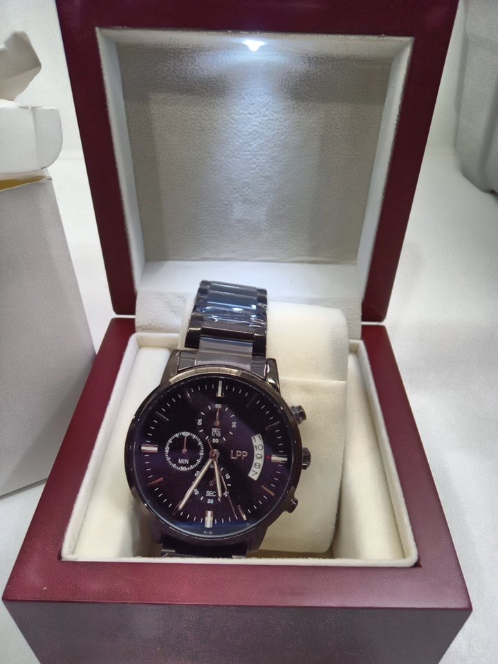 MENS LPP CUSTOM ENGRAVED BUSINESS CHRONOGRAPH QUARTZ WATCH - 44MM - BLACK / STAINLESS STEEL