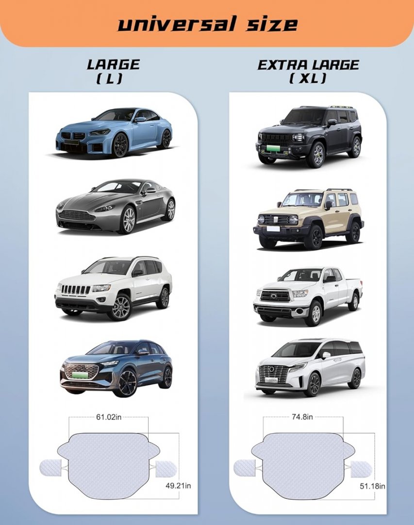 Snow & Ice 4-Layer Thickened Windshield Cover with Mirror Covers - Universal Fit (58" x 50”) - Silver Foil