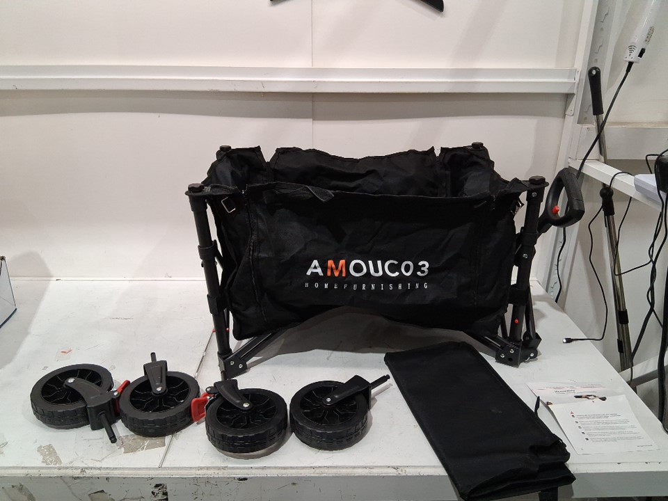 amada homefurnishing heavy duty foldable wagon cart with wheels and expandable storage - 120L - 220LBS Capacity - black (model: AMOUC03B-US)