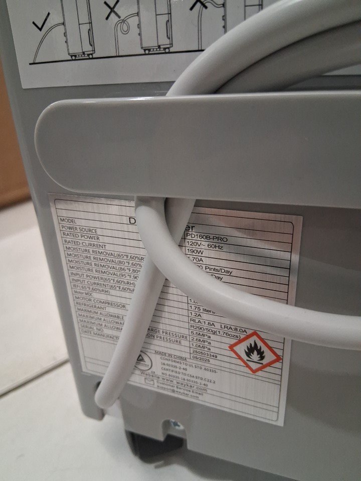 Waykar Dehumidifier with Auto or Manual Drainage - 0.6gal Water Tank Capacity - covers 2000 sq.ft - white (model: pd160b-pro)