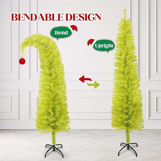 whimsical christmas tree with flexible branches- 5ft- lime green