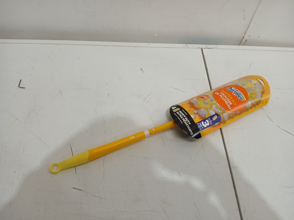 SWIFFER DUSTERS HEAVY DUTY 3FT EXTENDABLE HANDLE STARTER KIT FOR MULTI SURFACE CLEANING with 4PK of DUSTERS - yellow