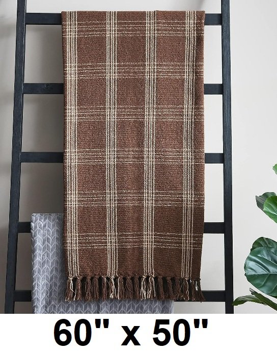 creative co-op Recycled Cotton Blend Throw Blanket with Fringe - 60" x 50" - brown