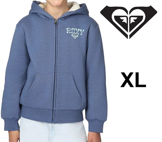 GIRLS ROXY FLEECE LINED ZIPPER HOODIE - XL - BLUE (STYLE: 4331212)