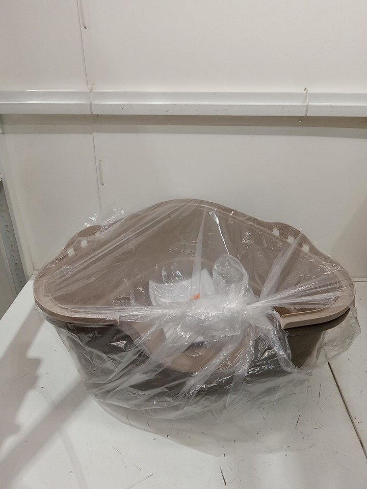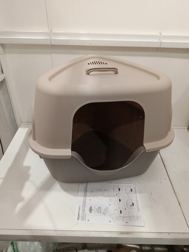 AMAZON BASICS NO-MESS HOODED CORNER TRIANGLE CAT LITTER BOX - 26" X 20" X 23" - BEIGE