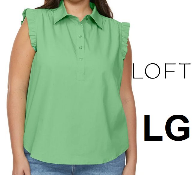 WOMEN'S Loft Ruffle Sleeveless Blouse - large- green - (style:187326)