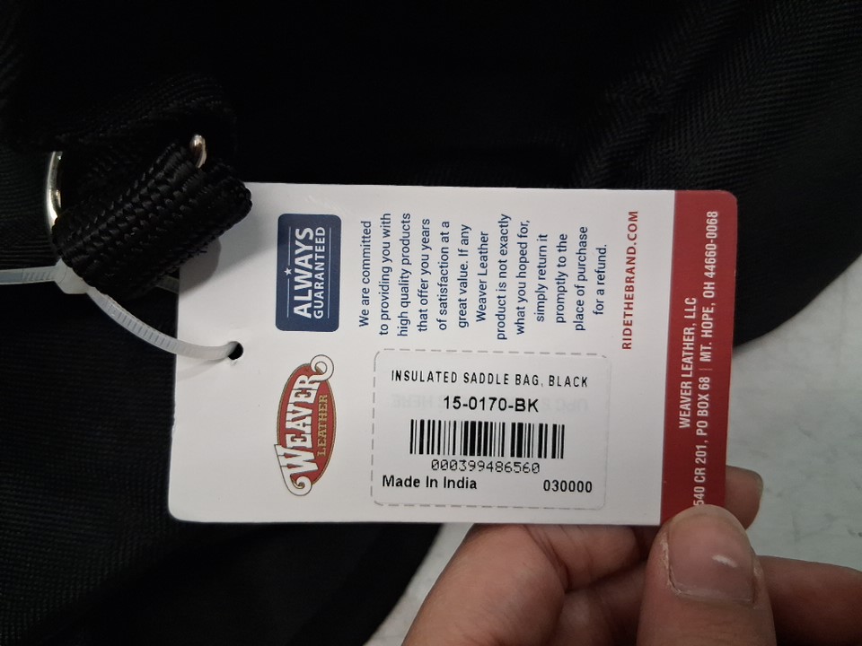 WEAVER INSULATED NYLON SADDLE BAG -12.0 Lx9.0 Hx21.0"- BLACK (MODEL:15-0170-BK)