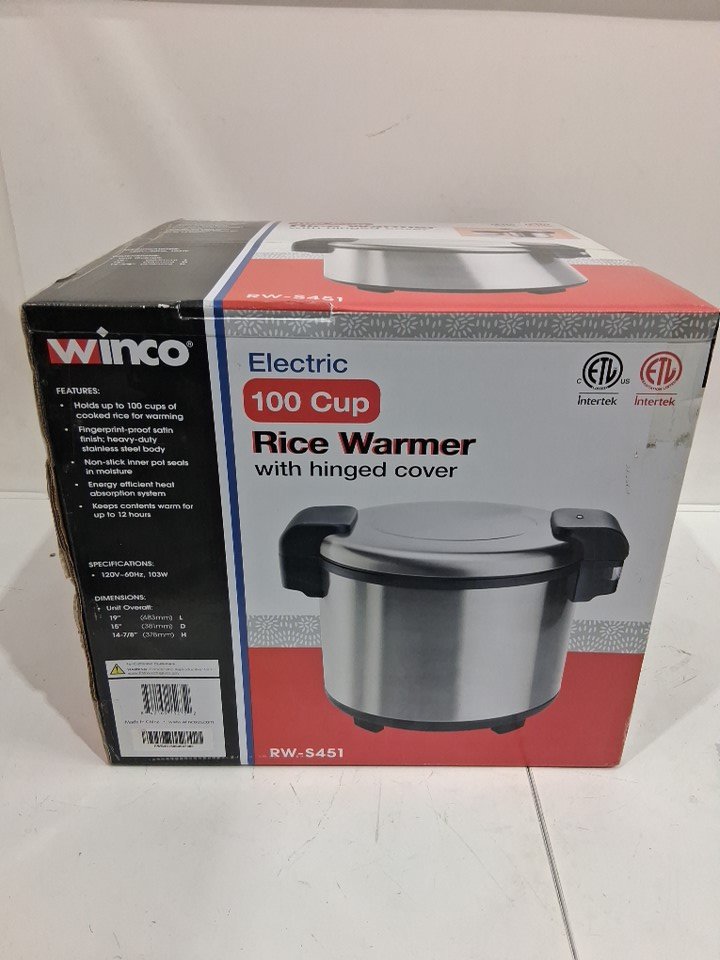 WINCO Electric Rice Warmer with Hinged Lid - 100-Cup - silver/black (MODEL: RW-S451)