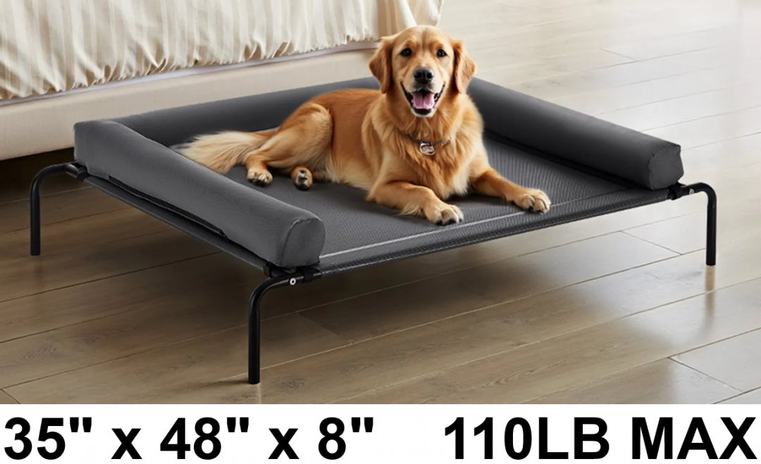 Elevated/raised Hammock Dog pet Bed - 35" x 48" x 8" - 110lb max - grey/black (model: yl-pb-009t)