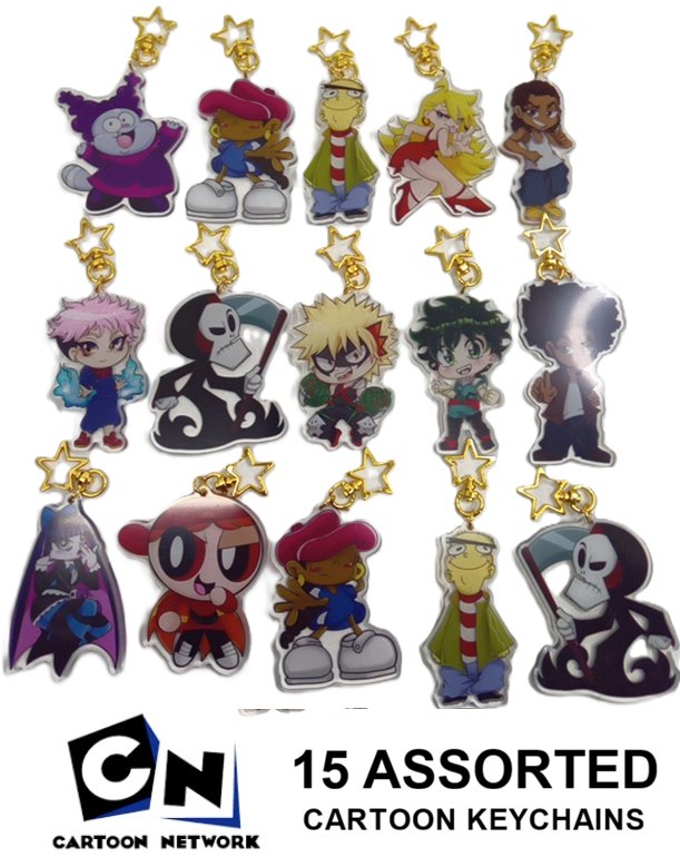 15 Assorted Cartoon Network character Acrylic Keychain Set - 3" / EACH - assorted characters / tv shows